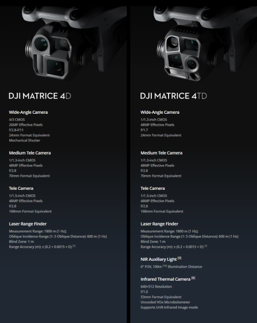Τα drones Matrice 4D και 4TD, σχεδιασμένα ειδικά για το Dock 3, προσφέρουν: